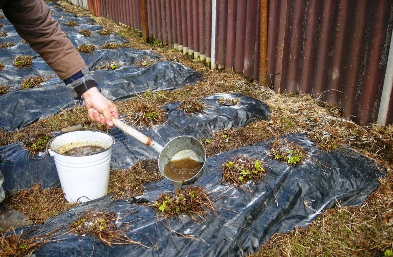 Смешать 1,5 тонны коровьего навоза и 3,5 тонны сгнившие листья, ботву и других отходов.