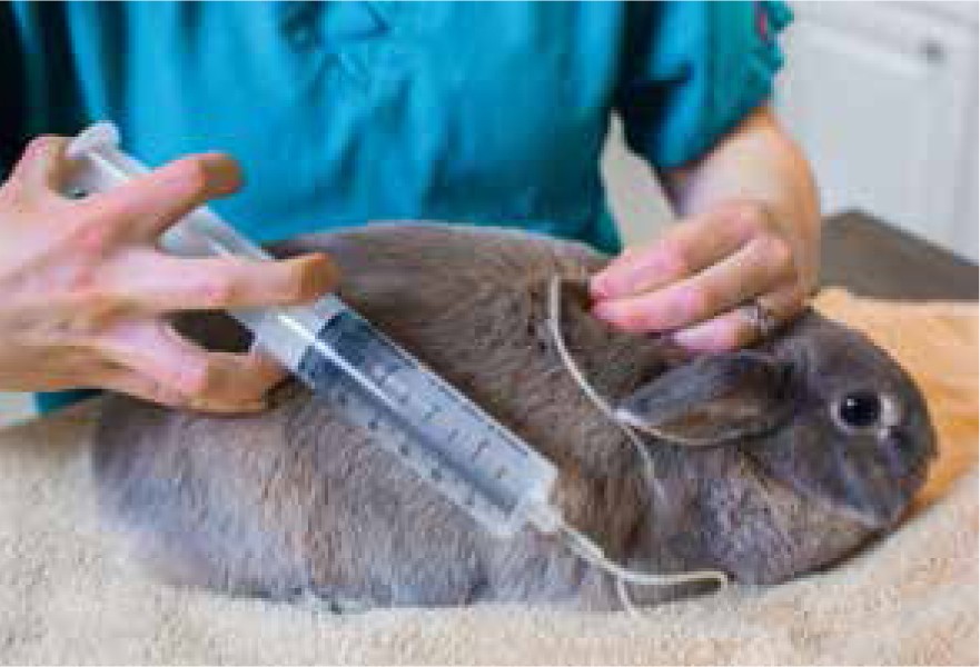 За самой природы кролика, из-за специфического устройства его желудочно-кишечного тракта и факта, что кролика не может стошнило, нет необходимости лишать кролика пищи перед операцией. Некоторые ветеринары предпочитают убрать еду за пару часов перед операцией, чтобы убедиться, что рот кролика очищенный от еды. Техника проведения операции под общим наркозом Когда ваш кролик теряет сознание (действие общего наркоза или частичная потеря активности под действием премедикации), его помещают на теплую подушечку, чтобы избежать переохлаждения тела. В некоторых случаях может понадобится дополнительный источник тепла). Если еще не была введена, подающий наркоз трубка, именно сейчас она будет установлена. Если катетер не был поставлен в этого, его поставят сейчас, когда кролик без сознания или обездвижен. Исключая короткие процедуры здоровым животным (зубные манипуляции и др.), Рекомендуется иметь поставлен катетер, чтобы в экстренной ситуации можно было быстро и легко подать кролику необходимые медикаменты или физ. растворы.