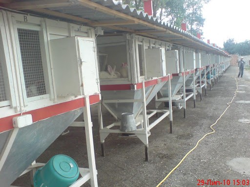 В цехе по соседству делают клетки. Пока за месяц проводится всего один шед (конструкция из 20 клеток), но планируется делать один в неделю. Свои клетки Болтунов гордо называет «Куриловском»: мол, в клетках такой конструкции в его родном селе издавна выращивали кроликов. Клетки двухъярусные, разделенные внутри сетчатыми перегородками. Здесь могут находиться одновременно крольчиха и два помета - только родились крольчата и уже подросли. Семейные отношения у кроликов складываются непросто. С одной стороны, когда крольчат отвергают от самки, они могут погибнуть от стресса и смены обстановки, с другой - крольчиха может задавить свой помет: например, почувствовав от него «чужой» запах или пожелав самца (в такие периоды она впадает в настоящее буйство) . Решение проблемы удалось найти: мать отбрасывают за сетку, чтобы и крольчата могли ее видеть, и она не могла им помешать.