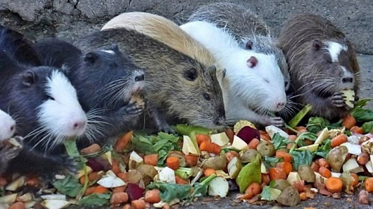 В нутрии пищеварительные органы приспособлены для переваривания сочных о емистих кормов, но с небольшим содержанием клетчатки. В природе нутрия питается водяными и береговыми растениями. Животные охотно