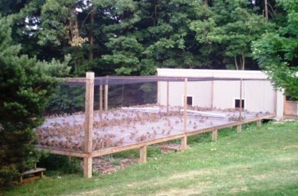 Крыша в клетки лучше делать односкатной, с наклоном к задней стенке. Для защиты от дождя и солнца с фасадной стороны делают козырек. На передней стенке рядом с дверкой оборудуют наружные ясли для сена и травы с решеткой из вертикально поставленных металлических или деревьев деревянных прутьев, укрепленных на расстоянии 3-5 см друг от друга. В клетке на высоте 15-20 см от пола нужно сделат